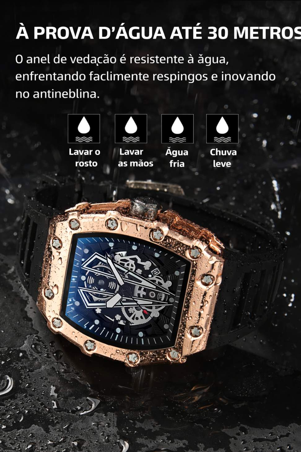Resistência à água: Até 3 ATM (resiste a respingos e chuva leve)
